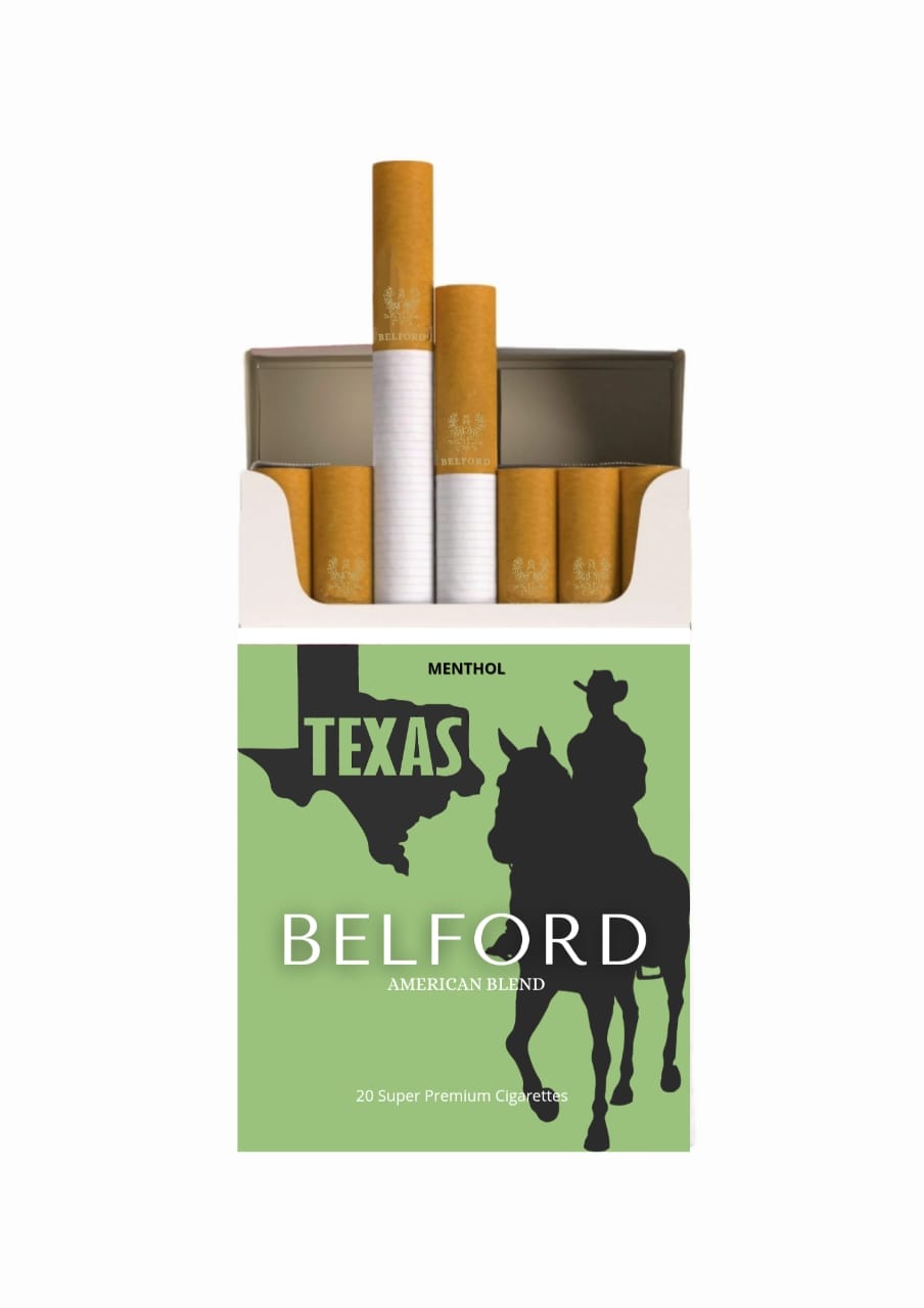 Belford Texas Menthol American Blend combines rich tobacco flavor with a refreshing menthol sensation, delivering a cool Super Premium smoking experience.