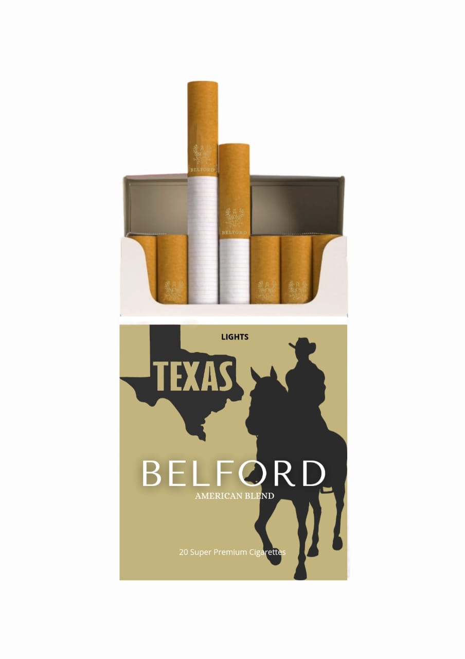 Belford Texas Lights American Blend. A Super Premium cigarette with a lighter (Lights) taste, representing freedom and superior quality.